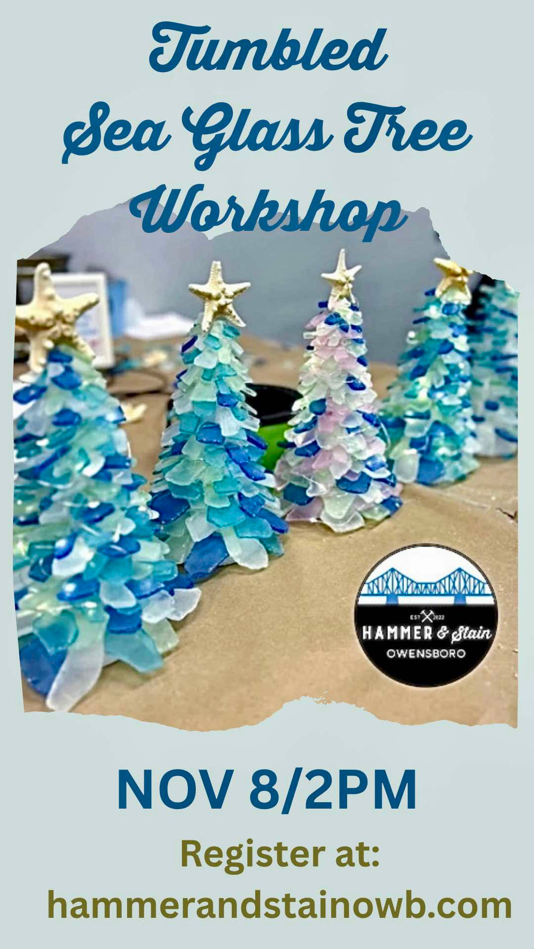 Join us in making this beautiful SEA GLASS TREE on Saturday, November 08th at 2:00pm at Hammer & Stain Owensboro . We will be creating this unforgettable TUMBLED SEA-GLASS TREE. Best part each one lights up! This registration will allow for one adult to make a one TUMBLED SEA GLASS TREE WITH LIGHTS.
